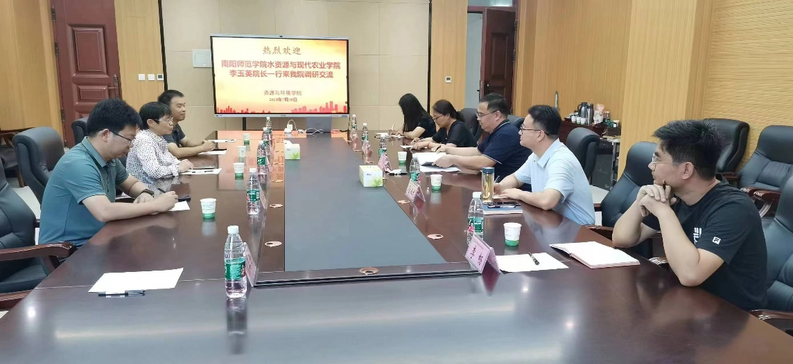 7月30日上午,南阳师范学院水资源与现代农业学院院长李玉英一行5人来欢乐斗地主下载 调研交流,院长王宜伦、系主任李慧、马双龙、科研秘书李畅、中心实验室副主任姜瑛参加了座谈。
