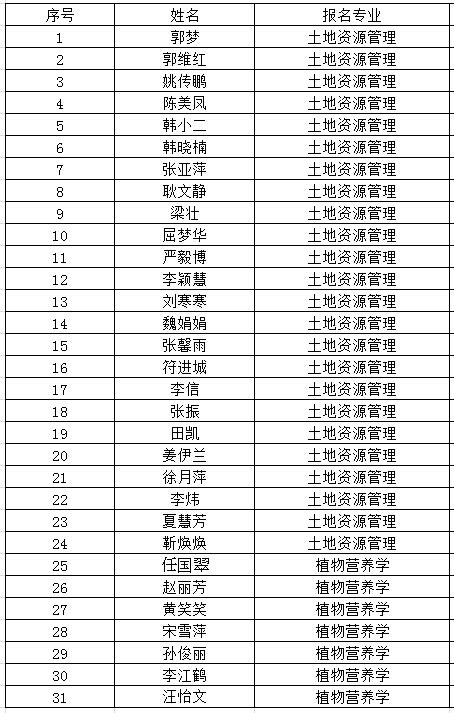 资环学院2017年夏令营参加学生名单